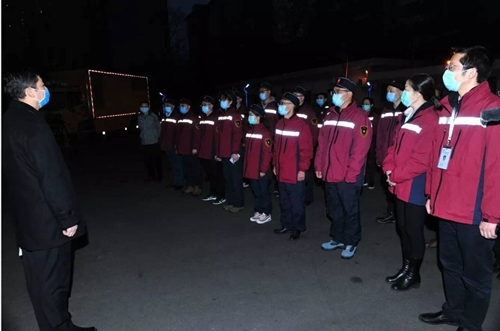 2月22日晚,省卫生健康委主任何延政,省卫生健康委党组成员、副主任宋世贵为第三批援湖北疾控队送行。
