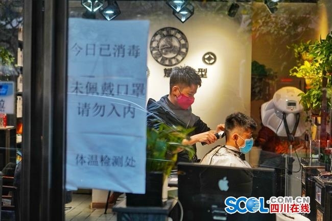 四川在线消息(记者 华小峰 摄影报道)今天是农历二月初二“龙抬头”,有剃头习俗。成都市区内许多理发店在做好防疫后,都纷纷开门迎客。疫情一月余,复工在际,不少市民选择在这天去理发,也寓意从“头”开始来迎接2020新的生活。