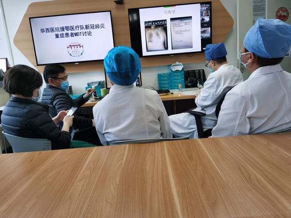 在危重病人MDT多学科救治上,每个治疗组充分发挥多学科成员价值,拟定完善个体化治疗方案,保证了患者的整体治疗质量。同时,在华西队伍接管的武大人民医院几个病区之间,武大人民医院和武汉红十字医院之间、武汉与华西本部之间实现常态化的危重病人的MDT多学科病例讨论,目前已完成武汉大学人民医院东院全院和多家医院间的近20例的病例讨论。