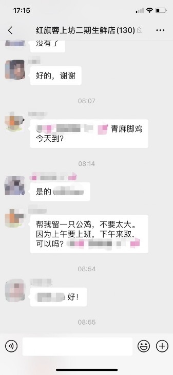 红旗连锁生鲜事业经营管理部生鲜三区部长肖青蓉介绍,早在疫情开始之前,红旗连锁部分生鲜店,已经通过与联系物业以及到店老顾客的方式,逐步建立微信群。疫情期间,这样的群越来越热闹。