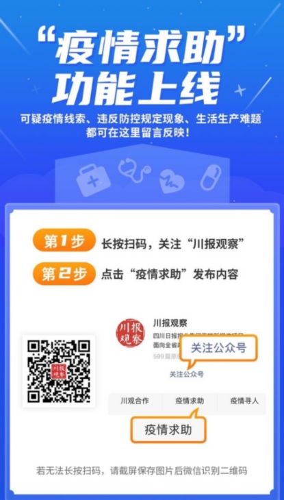 方式一:扫描上面海报里的二维码或者下方川报观察求助通道的二维码