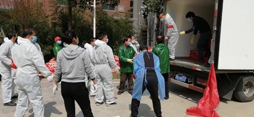 四川在线消息(张力夫 记者 钟帆)3月7日上午10时许,四川合信置业集团17辆运载货车,星夜兼程到达武汉,将价值约200万元的12吨大米、18吨鸭子以及200余吨蔬菜,捐助给江岸区各居民小约20000余户的老年人“桌上加餐”。