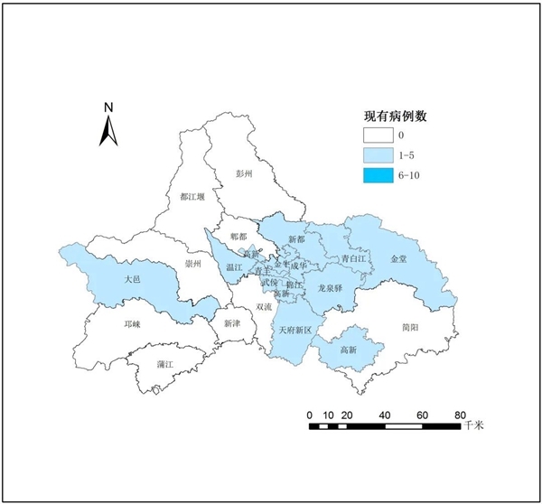 常住成都病例按照现住址、外地来蓉病例按照暂住地址划分,累计确诊病例及现有确诊病例(扣减出院及死亡病例)分布如下: