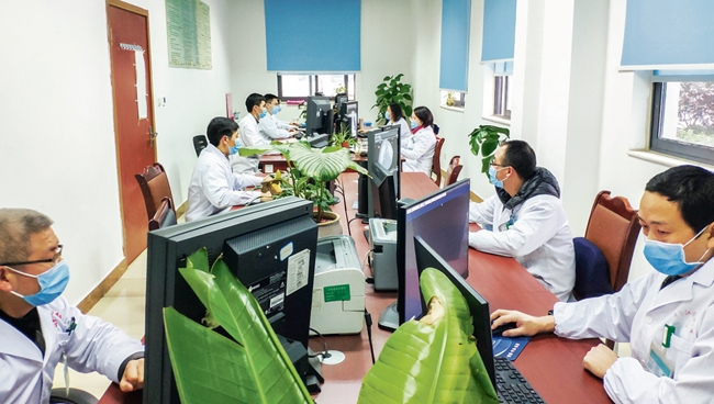 作为院内诊疗专家组成员之一,重症医学科主任张邦国除了日常诊疗工作以外,还要负责解读诊疗防控方案,以及通过流行病学史询问,进行血常规、淋巴细胞激素、胸部CT等检查,对疑似患者进行排查。