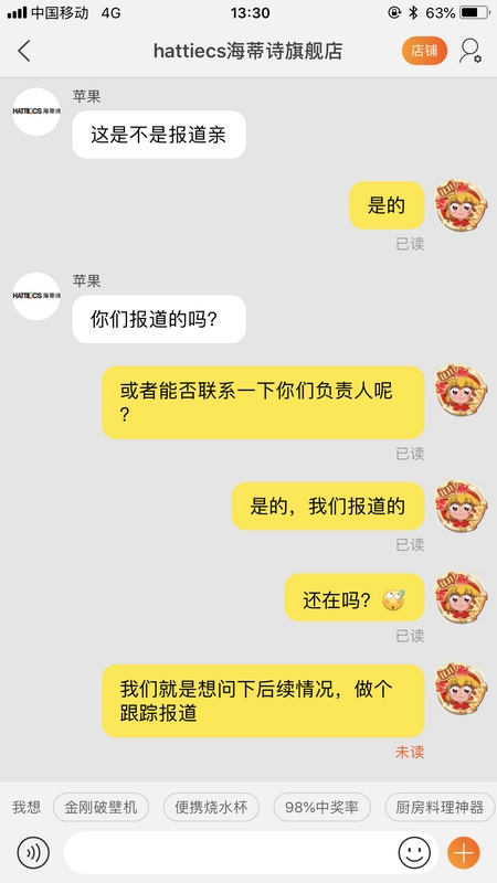 记者持续联系店家