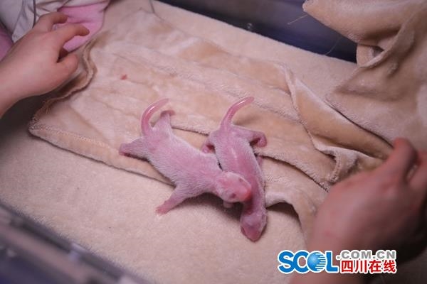 四川在线消息(记者 杨丹)2020年3月17日,成都大熊猫繁育研究基地(以下简称“熊猫基地”)的大熊猫“福娃(乳名:毛毛,谱系号:570)”在专家和工作人员的陪伴下,平安产下一对雄性大熊猫双胞胎,这也是2020年全球首对出生的圈养大熊猫双胞胎。