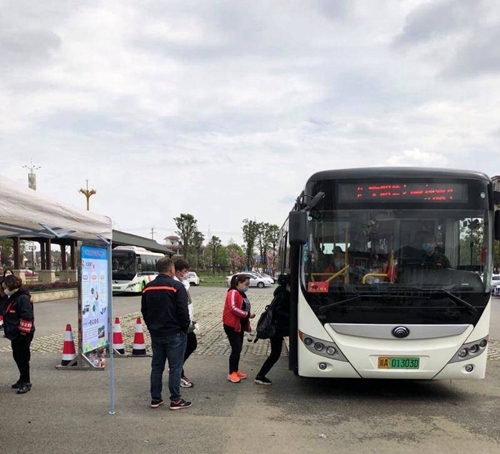“测量体温——入园登记——换取鲜花——统一乘车前往公墓”。在出发点醒目处设有“摆渡路线”和“入园流程”,方便群众了解情况。车上的文明劝导员介绍说,这样可做到“快去快回、快上快下”,有效控制好祭扫人员的流量,确保安全有序。