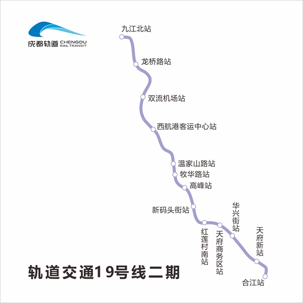 其中,轨道交通19号线二期工程线路起于九江北站,止于天府新站,线路长约42.87公里,设车站12座,停车场1座。