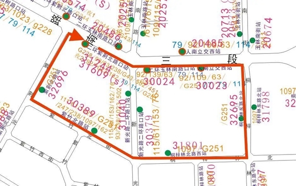 站点设置:二环紫荆北路口站、二环玉林南路口、人南立交桥西、桐梓林东路北、桐梓林北路西、紫竹北路、紫荆北路