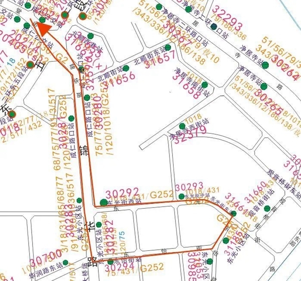 起讫点:红花北路二环路口站——红花北路二环路口站