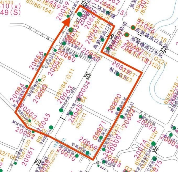 站点设置:红花北路二环路口、高笋塘路口南、解放东街、泰宏路北(20870)、泰宏路、平福路、解放西街口、解放西街、红花南路
