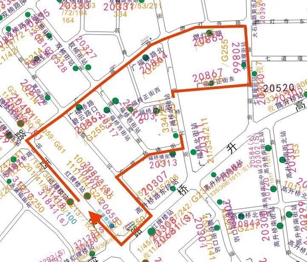 站点设置:红牌楼、广福路碧云路口、广福路北、燃灯寺路、七道堰街、广福桥正街东、广福桥北街(