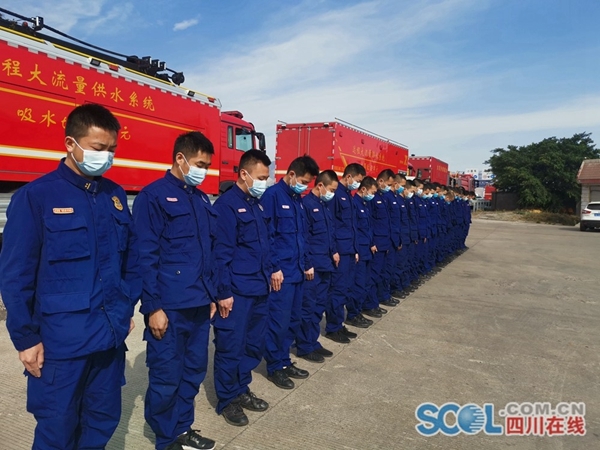 四川在线消息(郑礼军 记者 钟帆)为表达对抗击新冠肺炎疫情斗争牺牲烈士和逝世同胞的深切哀悼,4月4日全国性哀悼活动中,在位于凉山木里县消防救援大队营区内,扑救森林火灾的成都、攀枝花、资阳、凉山消防救援支队76名指战员,一起为抗疫烈士和逝世同胞默哀。