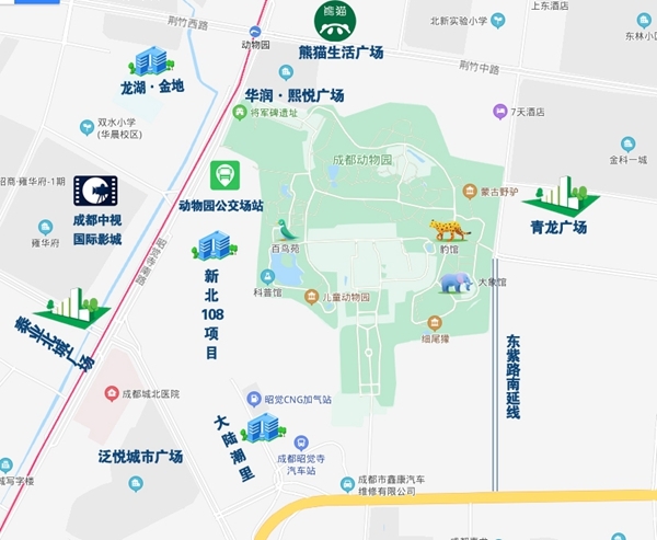 “为适应游客的快速增长,缓解川陕路动物园门口的交通拥堵,动物园已在临近东紫路一侧增设了东大门,这也为打造环成都动物园特色商圈创造了条件。”谭开德表示,随着紧临成都动物园的熙悦广场、青龙广场、泛悦城市广场等商业建筑相继投入运营,华润万家超市、永辉超市等大型零售商的入驻,新北天地商贸旅游发展区核心区的商业氛围越来越浓,消费场景和业态也越来越丰富,届时将在成都动物园周围形成一个建设总面积超过40万平方米的特色商圈。