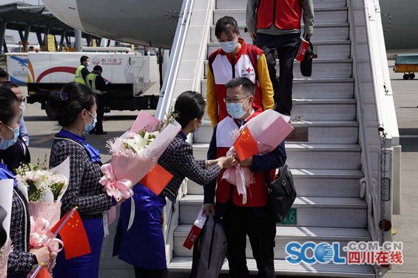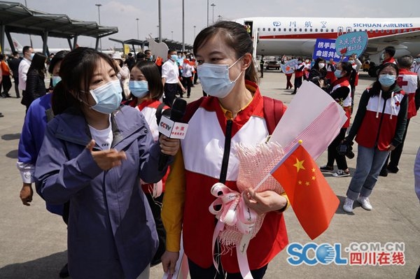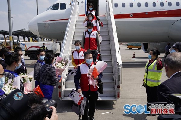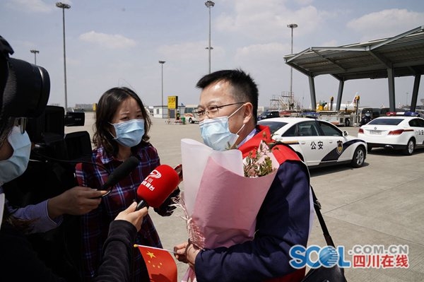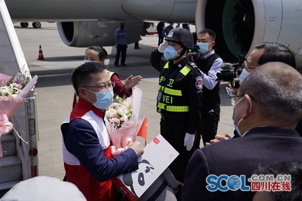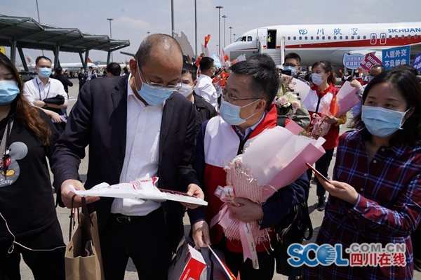 四川在线消息(记者 杨丹)4月10日,中国首批赴意大利抗疫医疗专家组成员——华西医院呼吸与危重症医学科主任梁宗安教授和重症医学科小儿ICU唐梦琳护士长凯旋回蓉,四川省政府秘书长张剡带队在双流国际机场迎接援意专家,四川大学校领导、华西医院院领导在医院行政楼迎接专家回院。