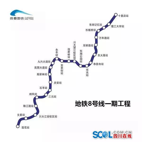 8号线南起莲花站,北至十里店站,共设25座车站、设车辆段1座,均为地下线。