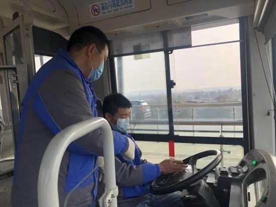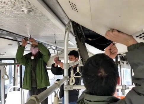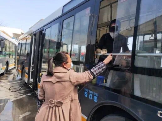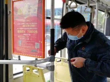 之后,公交保洁员再次对车窗、车门、内壁、地板、扶手、座椅、仪表盘、投币箱等部位彻底清洗消毒;张贴车内服务、防疫标识;营造舒适的乘车环境。