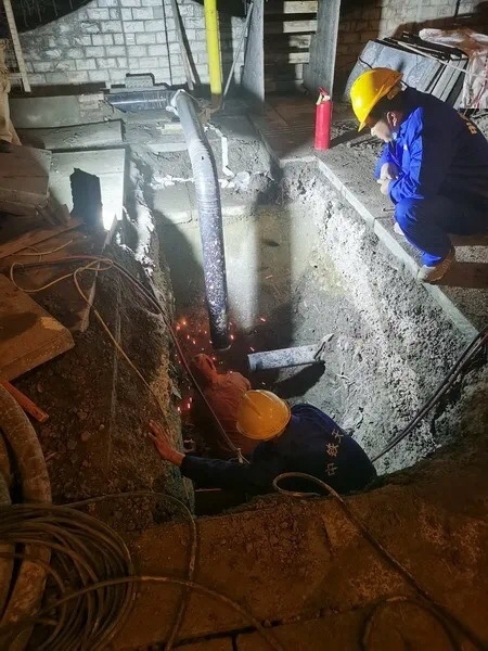 4月14日7时,8号线高朋大道站G出入口燃气顺利碰管实现接驳。