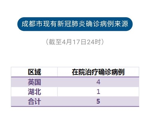 截至4月17日24时,成都市累计报告确诊病例166例,累计出院158人,死亡3人,其余5例确诊病例正在定点医院隔离治疗。