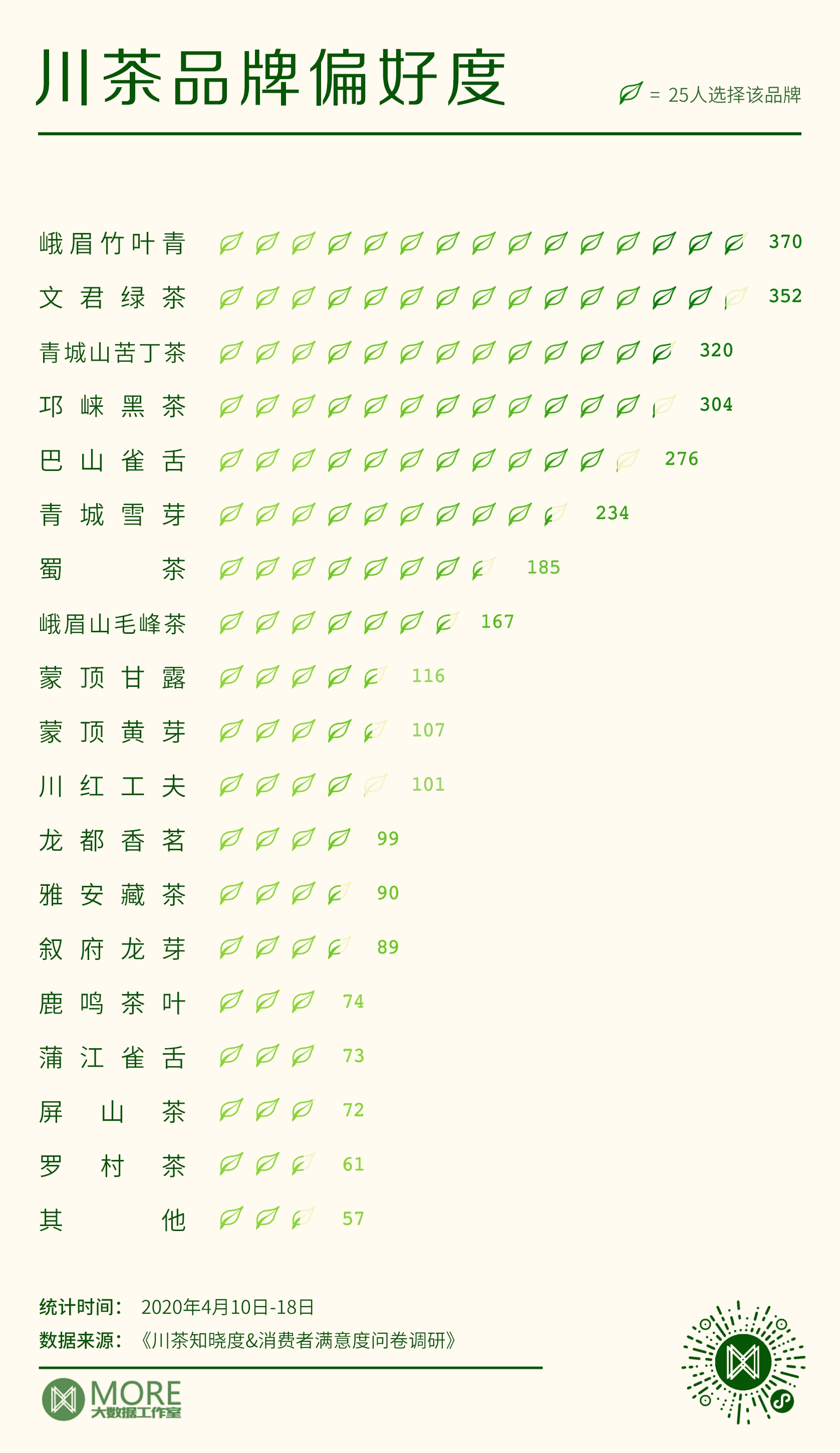 另外,川报全媒体集群MORE大数据工作室近期将发布《2020·川茶竞争力榜单》,并就该榜单涉及到的茶品牌口碑、电商销量以及茶叶主产区县产能情况等维度进行数据分析,敬请垂注!