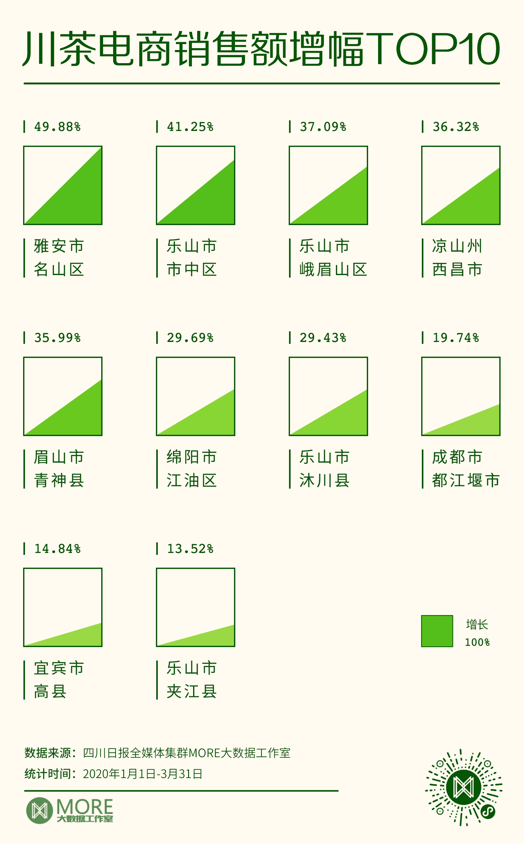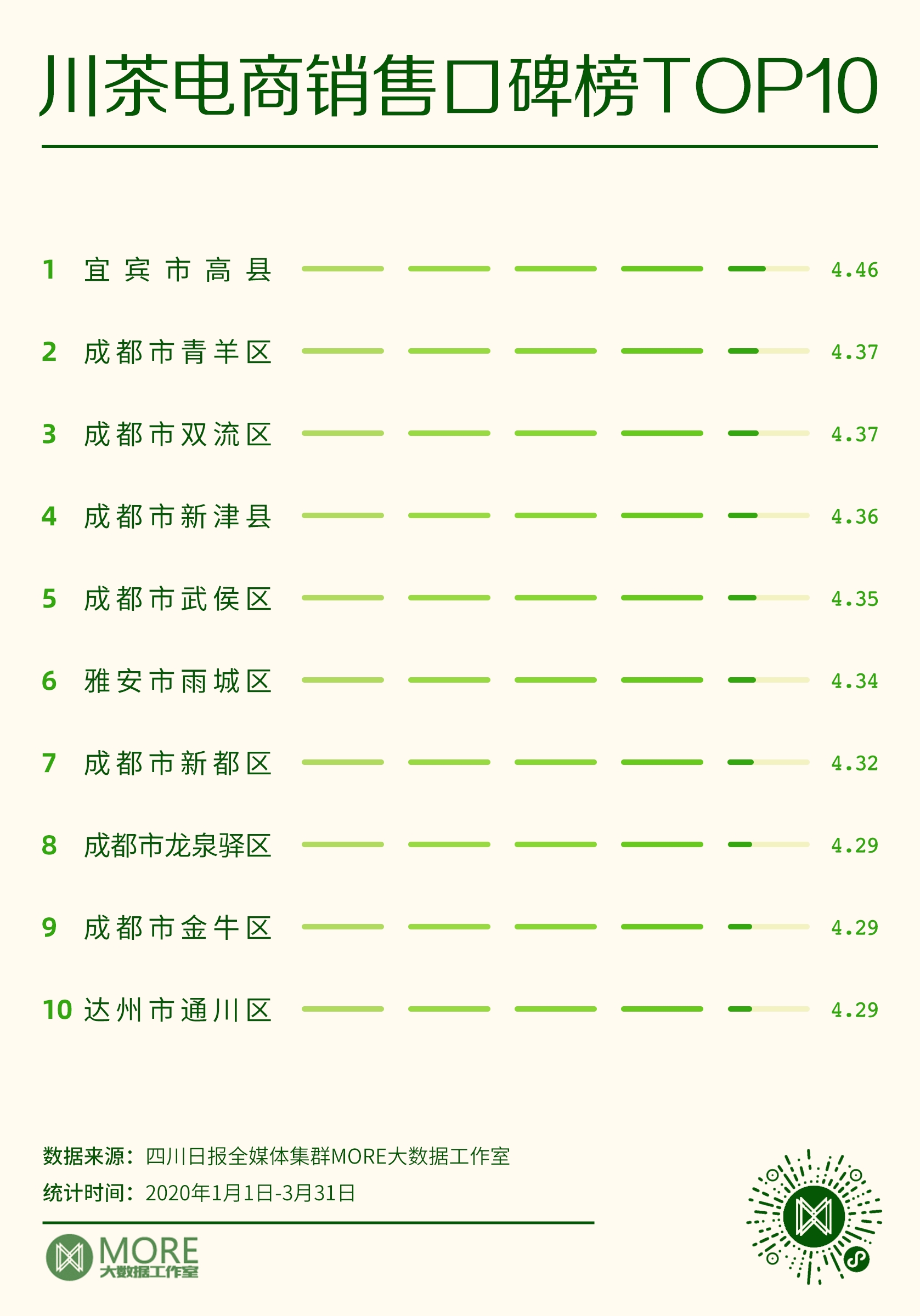 另外,川报全媒体集群MORE大数据工作室将于近期发布《2020·川茶竞争力榜单》,并就该榜单涉及到的茶品牌口碑、电商销量以及茶叶主产区县产能情况等维度进行数据分析,敬请垂注!