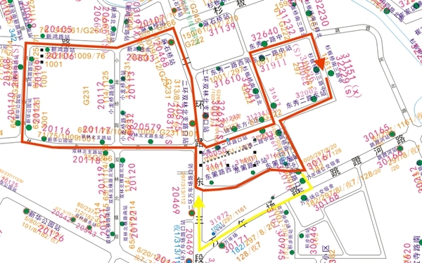站点设置:取消二环双林北支路口、东秀一路西;增设双林北支路东、双林北支路、新华公园、新鸿南路、新鸿路、麻石桥、东秀二路二环路口、杉板桥南一路中。