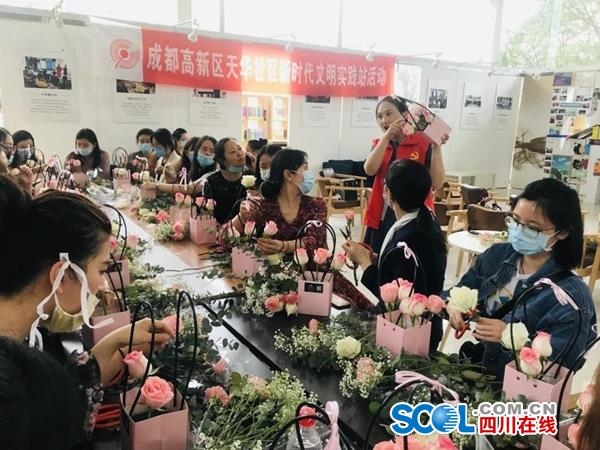 四川在线消息(记者 王玥)在统筹推进疫情防控和复工复产“两不误、两促进”的新形势下,为进一步强化桂溪街道天华社区党建联盟分会“资源共享、活动联办、合力互进”的建设力度,同时展现辖区新时代女性在疫情防控期勇担责任、主动作为、阳光自信的良好精神风貌,值母亲节来临之际,成都高新区桂溪街道天华社区党建联盟分会于5月8日组织成员单位30余名女性党员在社区一楼大厅开展“疫情下,向阳生长的美好”主题活动。
