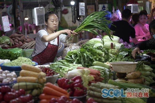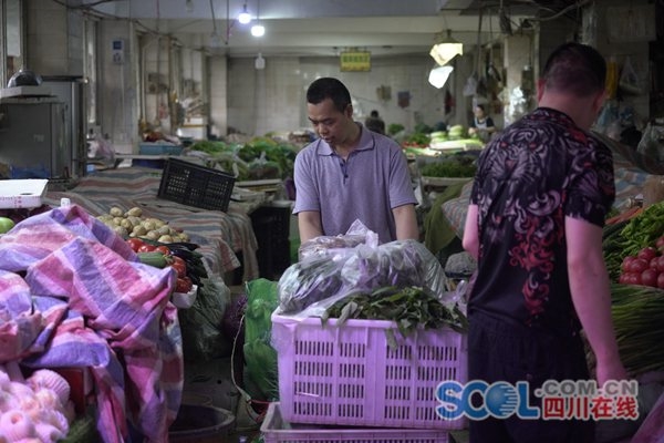 成都的夏天热了起来,外墙上的“光明路菜市”几个大字,须得眯起眼才看得清。但是,蓝的天,白的云,平常却有趣的人生,在这个市场里,日日可见,时时可见。