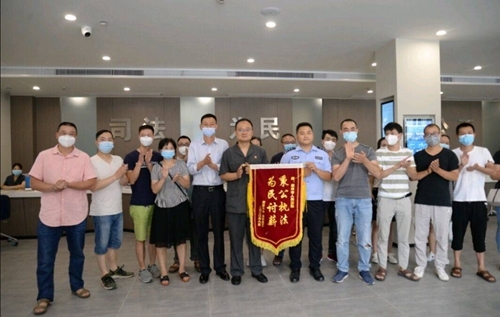 工人们在当天签字后,就能收到全部被拖欠的工资。案款发放大会结束后,十多个工人代表自发到崇州市人民法院送上印有“秉公执法、为民讨薪”的锦旗表达谢意。