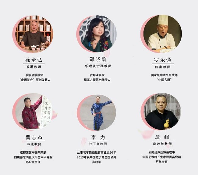 “老友学院”是为退休人群专门定制,课程设置上,甄选了目前各老年大学的主要热门课程,包括舞蹈、声乐、各类乐器、烹饪、摄影等多个学科。各科课程均由多年从事老年教育的老师任教,其中蜀派古琴第七代传人郑晓韵、国家级中式烹饪技师“中国名厨”罗永通、茶学启蒙导师徐全弘等名师名家都将通过“老友学院”与大家见面授课。
