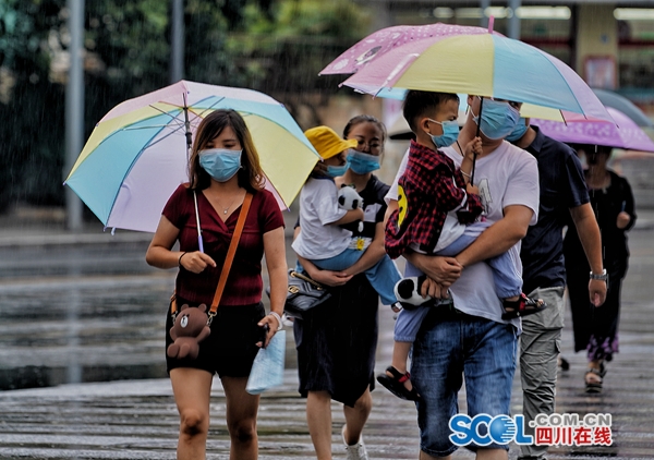 四川在线消息(记者 华小峰摄影报道)6月26日,端午小假第二天,成都气象局今早发布了暴雨蓝色预警,上午,凉爽的成都天空乌云渐渐聚集,逐渐刮起的阵风在午间带来了零星雨点。下午,大雨如期而至,并伴有短时阵性大风。多日闷热之后,成都人终于迎来了凉爽。