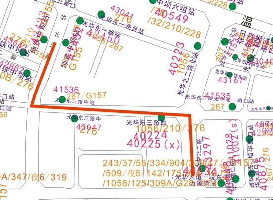 站点设置:地铁三瓦窑站(C口)、金桂路(地铁三瓦窑A口)、桂溪路、东苑。