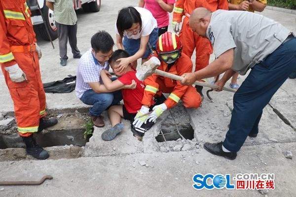 四川在线消息(赵江川 张金 记者 钟帆)7月15日16时许,在绵阳市盐亭县一小区内,一名7岁的小男孩与朋友打玩耍时发生意外,左脚不幸陷入了下水道的水泥盖缝隙内,大腿靠膝盖处被下水道内的钢筋刺入,紧急十分危急。