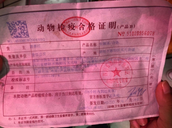 7月24日下午,成华区市场监管局也网友反映的情况予以了回复:他们对建新农贸市场牛肉摊位进行了检查,经查该批牛肉动票据齐全,由于视频图像不清晰及购买牛肉已被消费者食用,无法肉眼判断是否为寄生虫。现场牛肉也存在白色物质,经商家演示,确定为“牛筋”(可食用)。他们根据相关情况回复了投诉人,并委托成都海关技术中心对现场牛肉进行寄生虫检验,待检测结果出来后,作进一步处理。