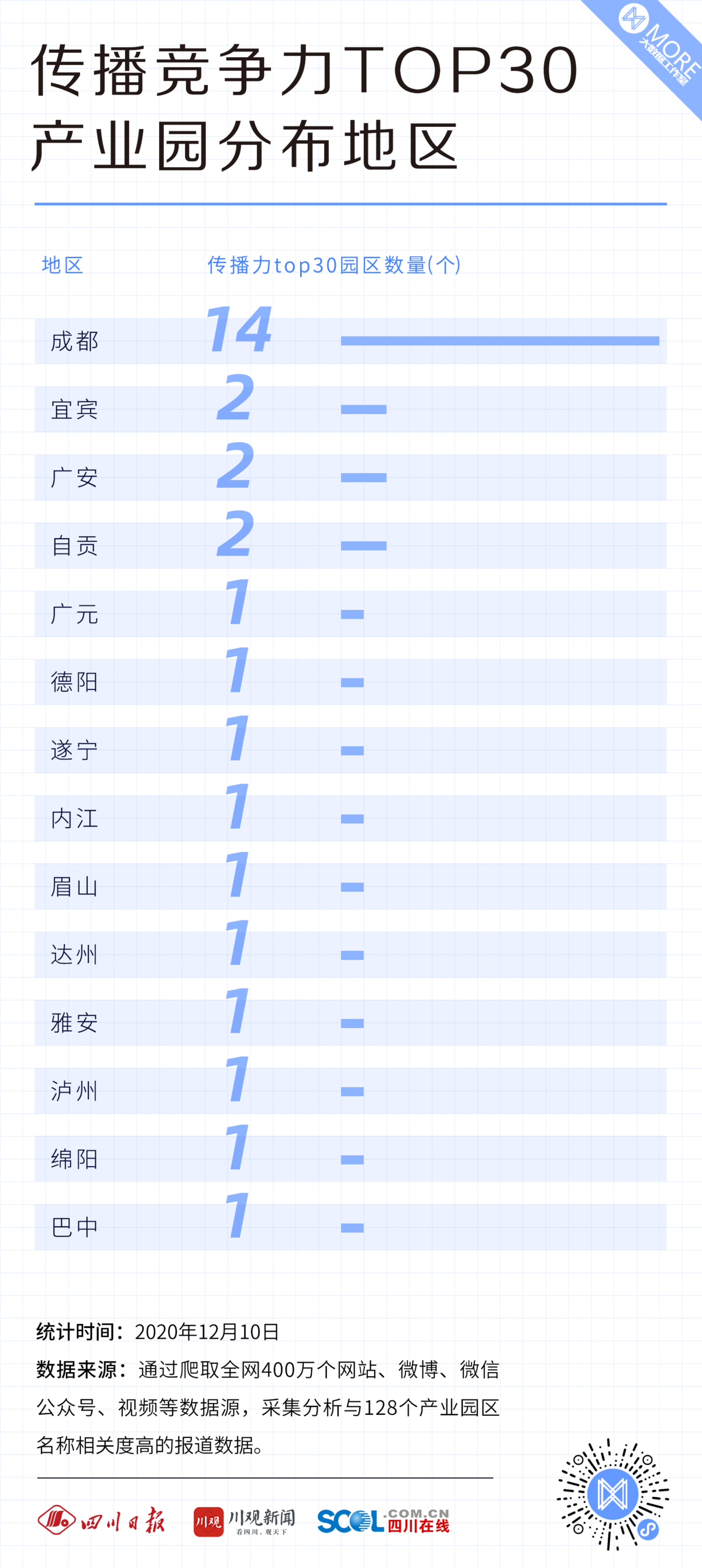 数据显示,在《2020四川重点产业园传播竞争力榜单30强》中,成都的产业园区有14个。