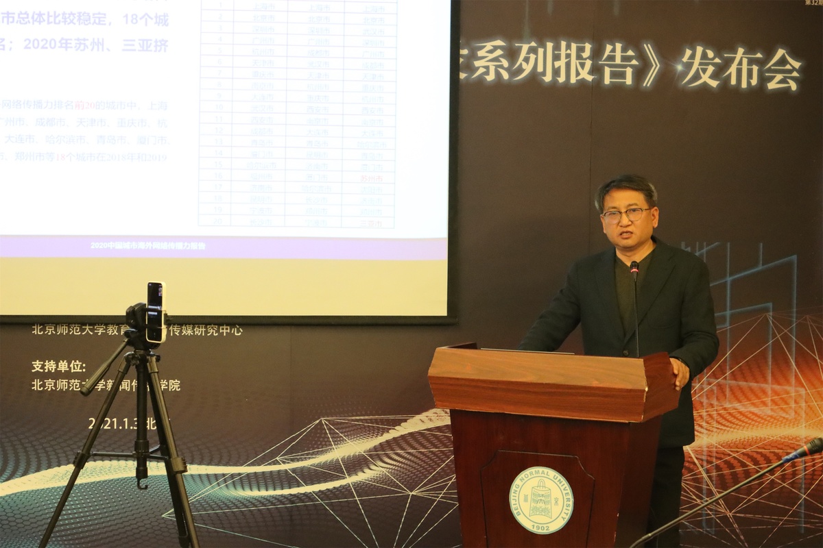 1月3日下午,第六届中国海外网络传播力论坛暨《2020中国大学、央企、城市海外网络传播力建设系列报告》发布会在北京师范大学以线上线下结合方式成功举办。发布会上,北京师范大学新闻传播学院研究员及教育新闻与传媒研究中心主任方增泉发布了《2020中国大学海外网络传播力建设报告》。北京师范大学新闻传播学院教授、新媒体传播研究中心主任张洪忠发布了《2020中国大学海外网络传播力建设报告》以及《2020中国城市海外网络传播力建设报告》。中国日报网总编韩蕾和光明网总裁杨谷代表联合发布方致辞。
