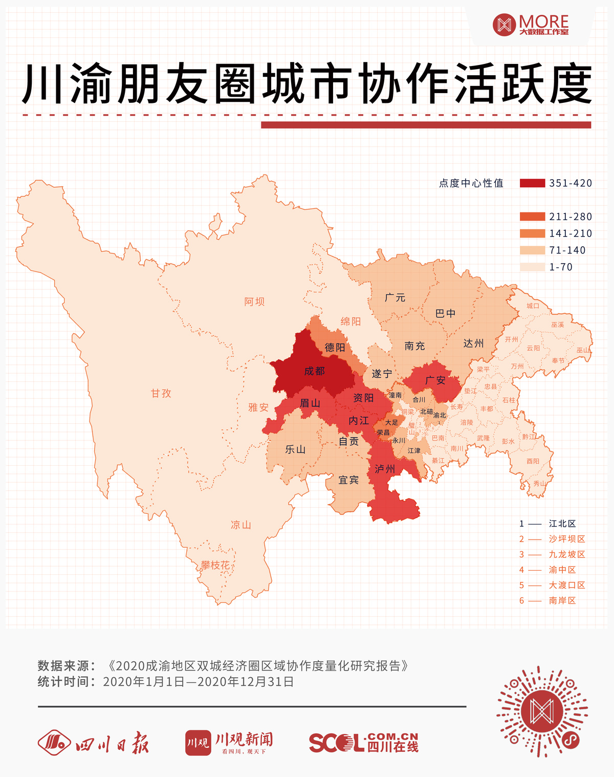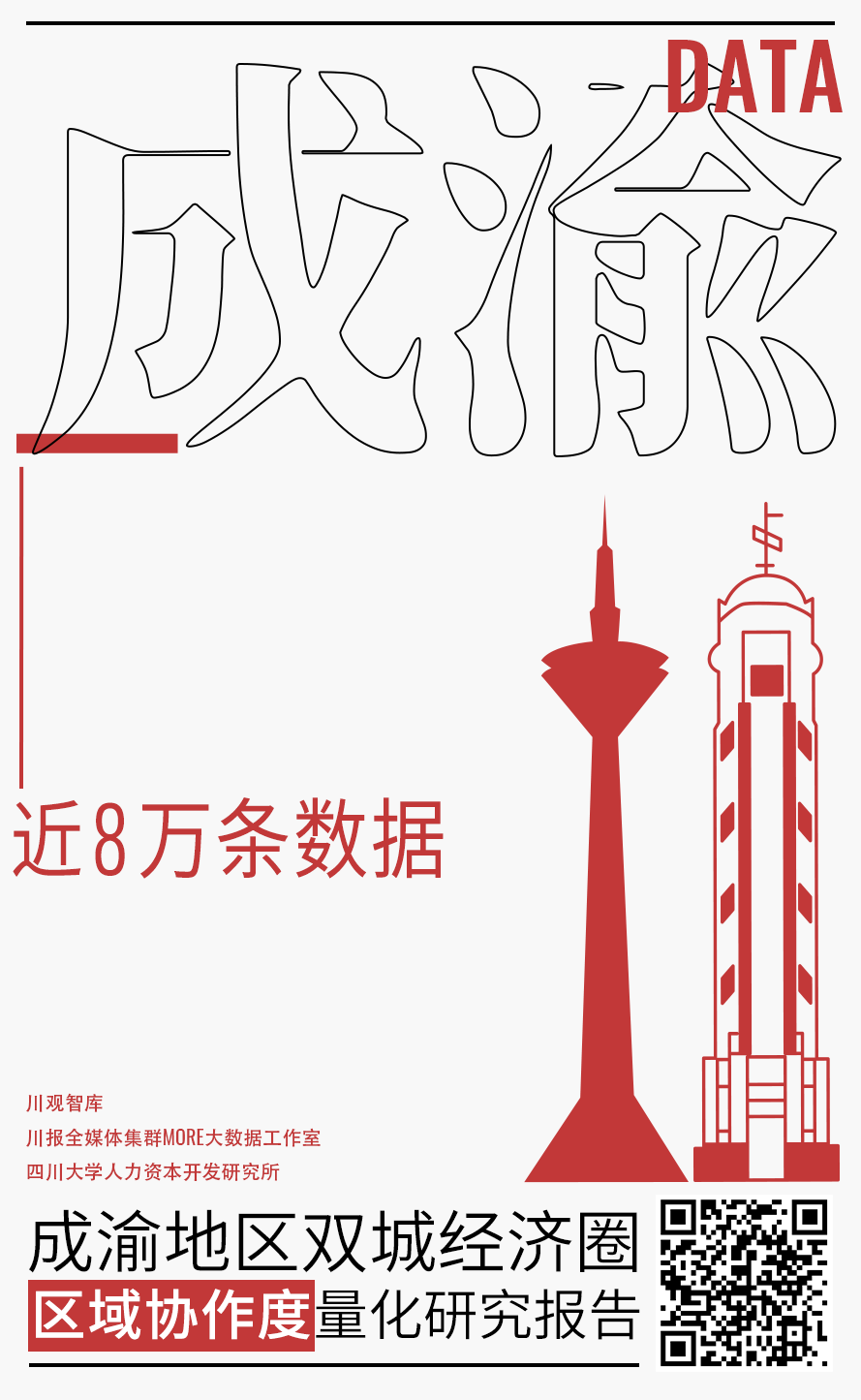 为提升数据资源的价值,川报全媒体集群MORE大数据工作室特以市州区县为单位,开放该报告中涉及到川渝交流各个维度的相关数据,以期川渝朋友圈未来的协作度更深、互补性更强。