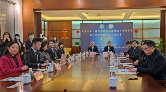 2月4日,“天府云医·海外惠侨远程医疗站”和“海外惠侨熊猫书屋”西班牙站启动仪式在成都和巴塞罗那两地举行。中国驻巴塞罗那总领事林楠,四川省侨办主任文甦,四川省中医药管理局党组书记、局长田兴军,四川省中医院院长谢春光、党委书记常德贵以及西班牙侨商总会会长金浩等旅西侨胞在线出席启动仪式。