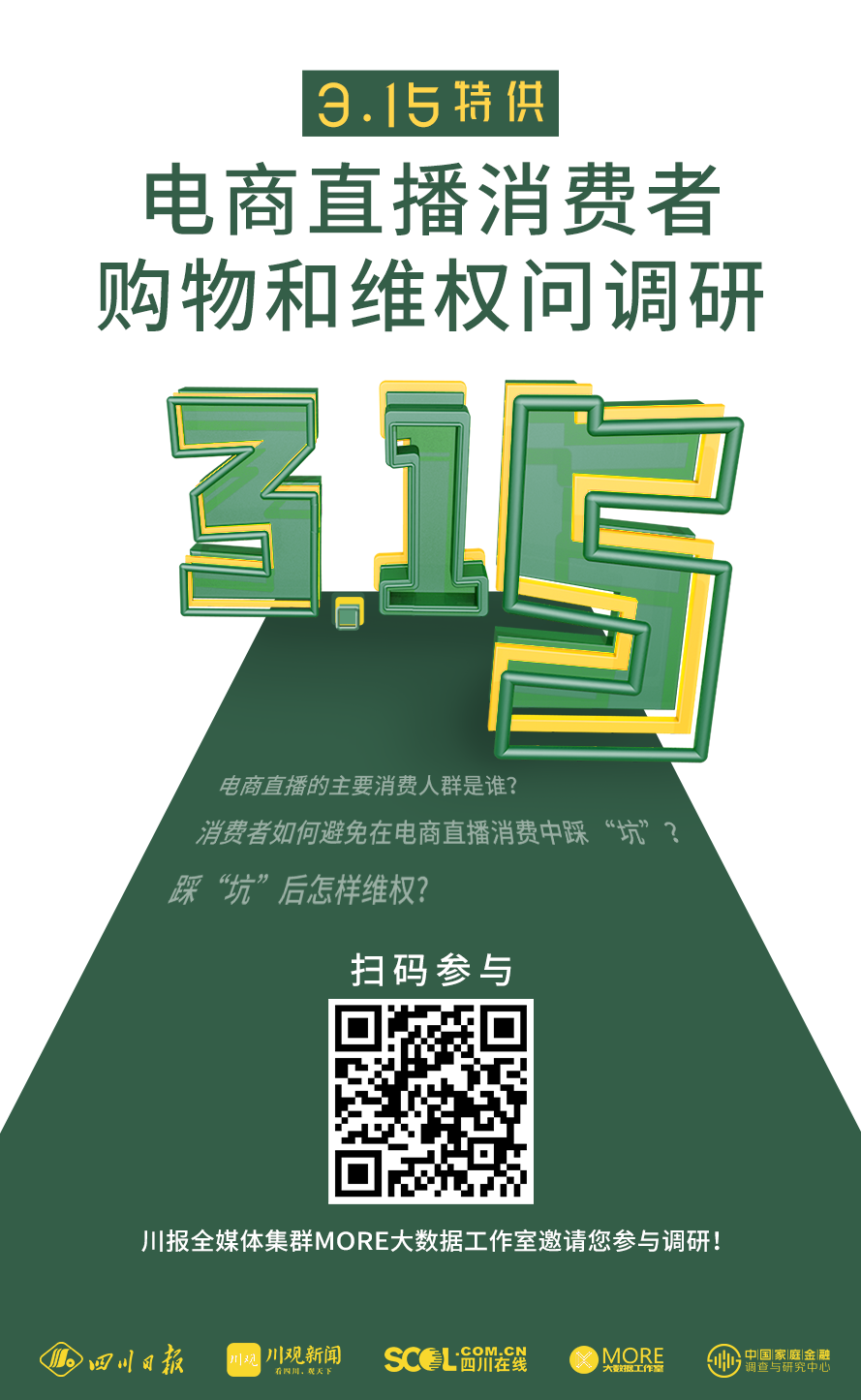 电商直播的主要消费人群是谁,消费者如何避免在电商直播消费中踩 “坑”,踩“坑”后怎样维权?在2020 年3.15消费者权益保护日来临之际,全媒时政新闻部与川报全媒体集群MORE大数据工作室联合四川省保护消费者权益委员会和中国家庭金融调查与研究中心,针对消费者的电商直播消费、维权情况及电商直播本身需要相关部门提供哪些帮助开展了“电商直播消费者购物和维权问卷调研”。