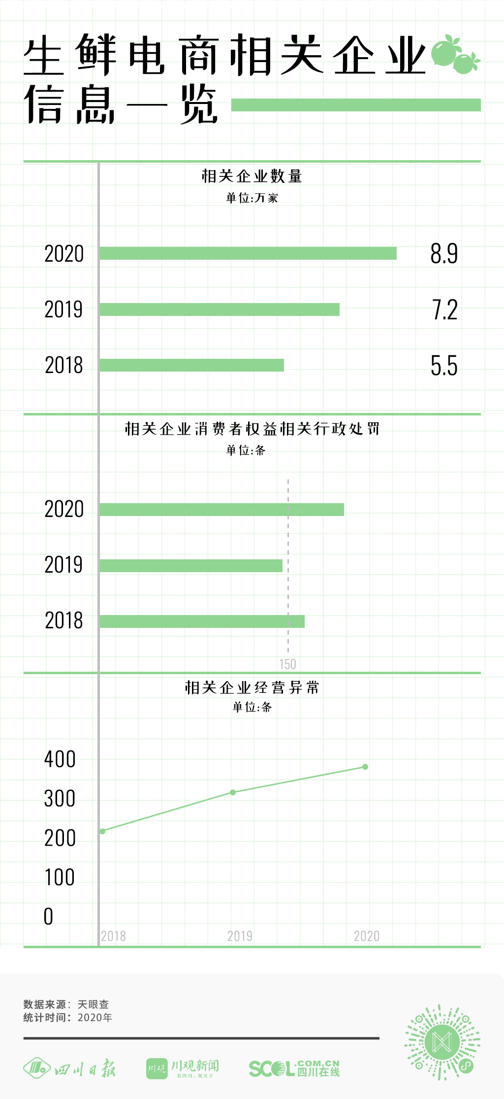 生鲜电商的火爆引发各路巨头与资本的垂涎。2020年全年,社区团购和生鲜电商融资金额超百亿人民币。有趣的是,随着市场逐渐扩大,生鲜电商行业发生经营异常的现象呈现逐年小幅增加态势。