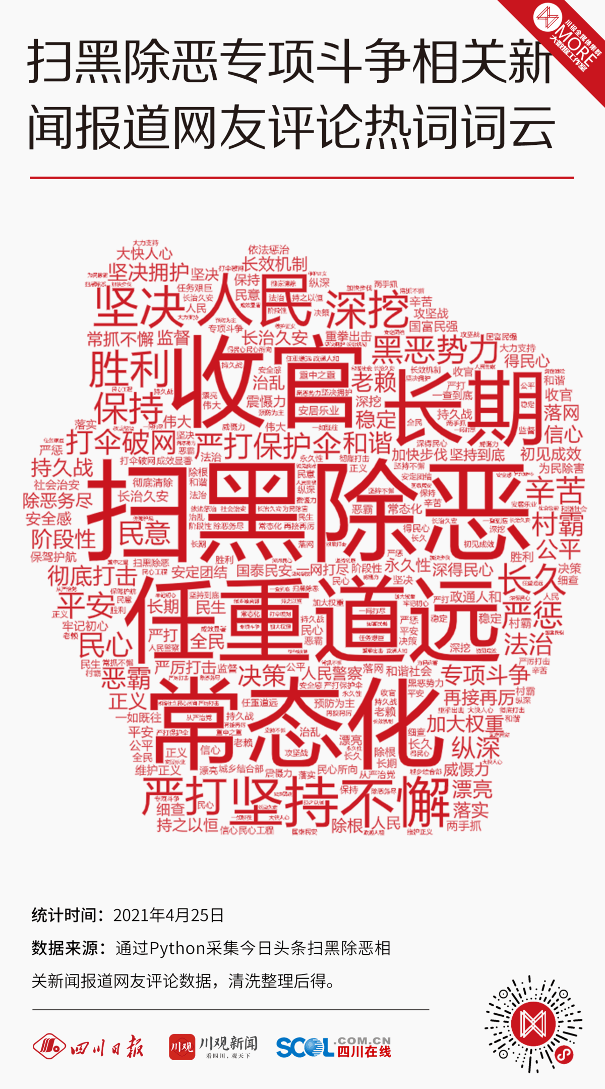 通过对今日头条平台中扫黑除恶相关新闻报道的评论进行整理发现,民众普遍认为扫黑除恶专项斗争需要长期开展。在统计的6篇新闻报道共计14153条评论中,“任重道远”“常态化”“坚持不懈”“长期”等词高频出现,其中表达扫黑除恶专项斗争需持续进行的评论数超40%。