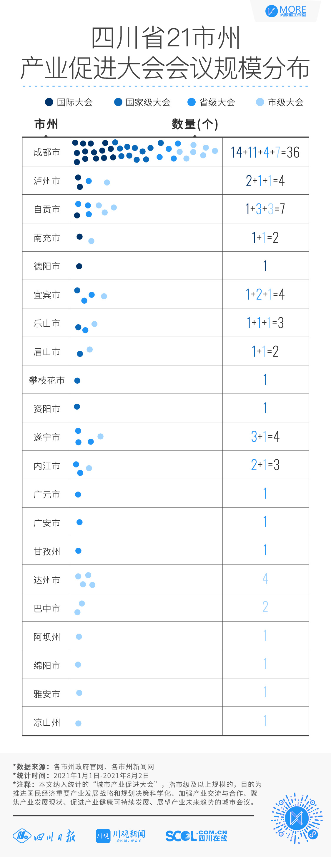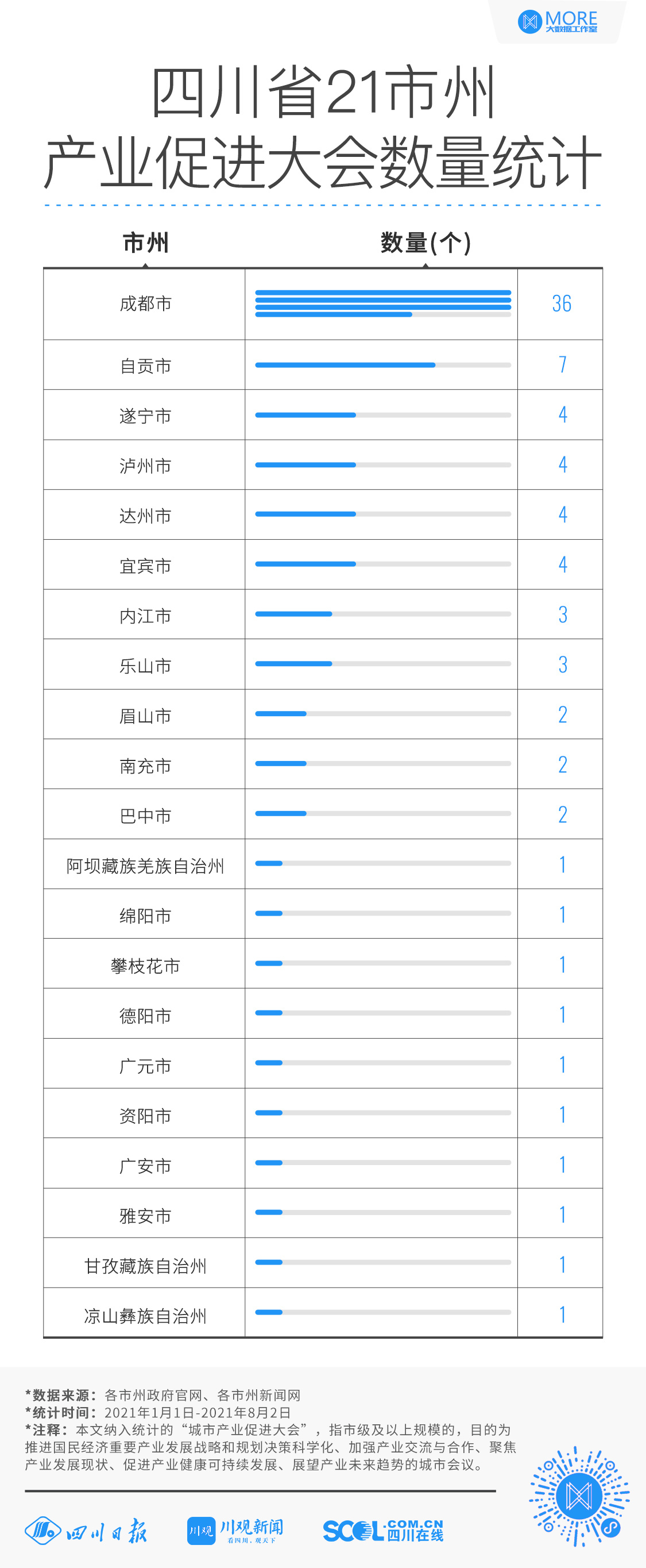 从数据看,截至今年8月2日,全省21个地市州共举办了81场产业促进大会,其中成都以36场遥遥领先其他市州。