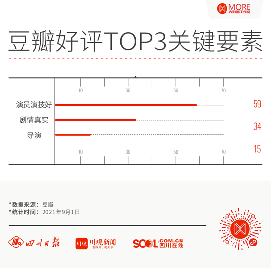 一部优秀的电视剧离不开演技、剧情、拍摄手法等因素的加持。通过爬取豆瓣平台数据发现,《扫黑风暴》好评TOP3的关键要素分别为“演员演技好”“剧情真实”及“导演”。