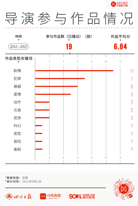 此外,《扫黑风暴》的导演五百曾参与过《白夜追凶》《画江湖之不良人》《心理罪》的制作,三者在豆瓣平台上评分均超过7分,《白夜追凶》更是获得9.0分的高分。自2012年-2021年,五百共参与作品19部,作品平均分为6.84,其更擅长“剧情”“犯罪”“悬疑”类型的作品打造,经验丰富,享有盛誉。