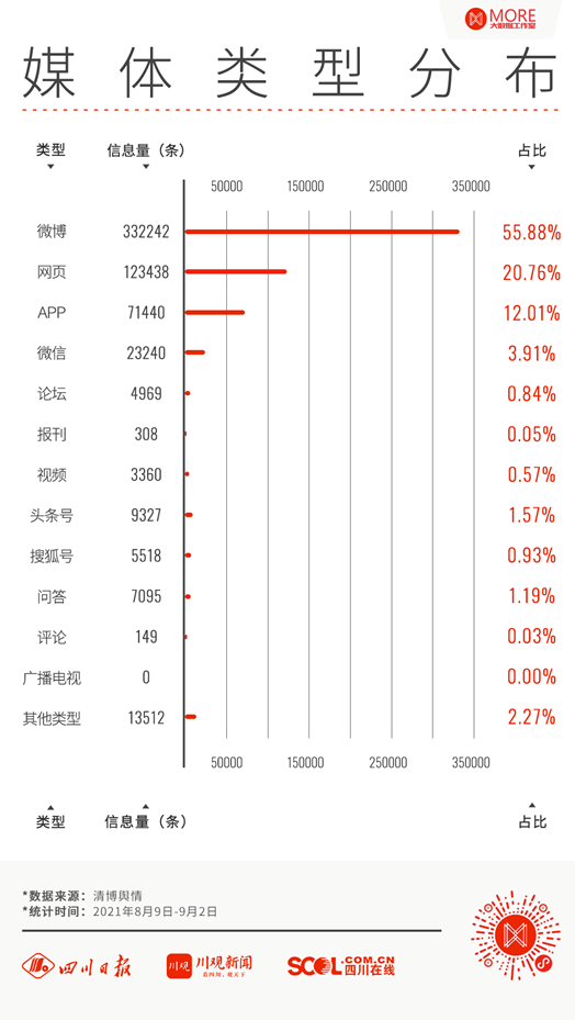三、全网信息量传播达五十多万条,微博平台最热闹