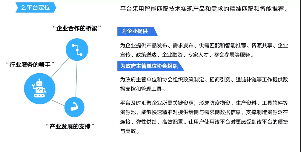 平台的定位主要围绕“行业服务的帮手”、“企业合作的桥梁”、“产业发展的支撑”进行定位。