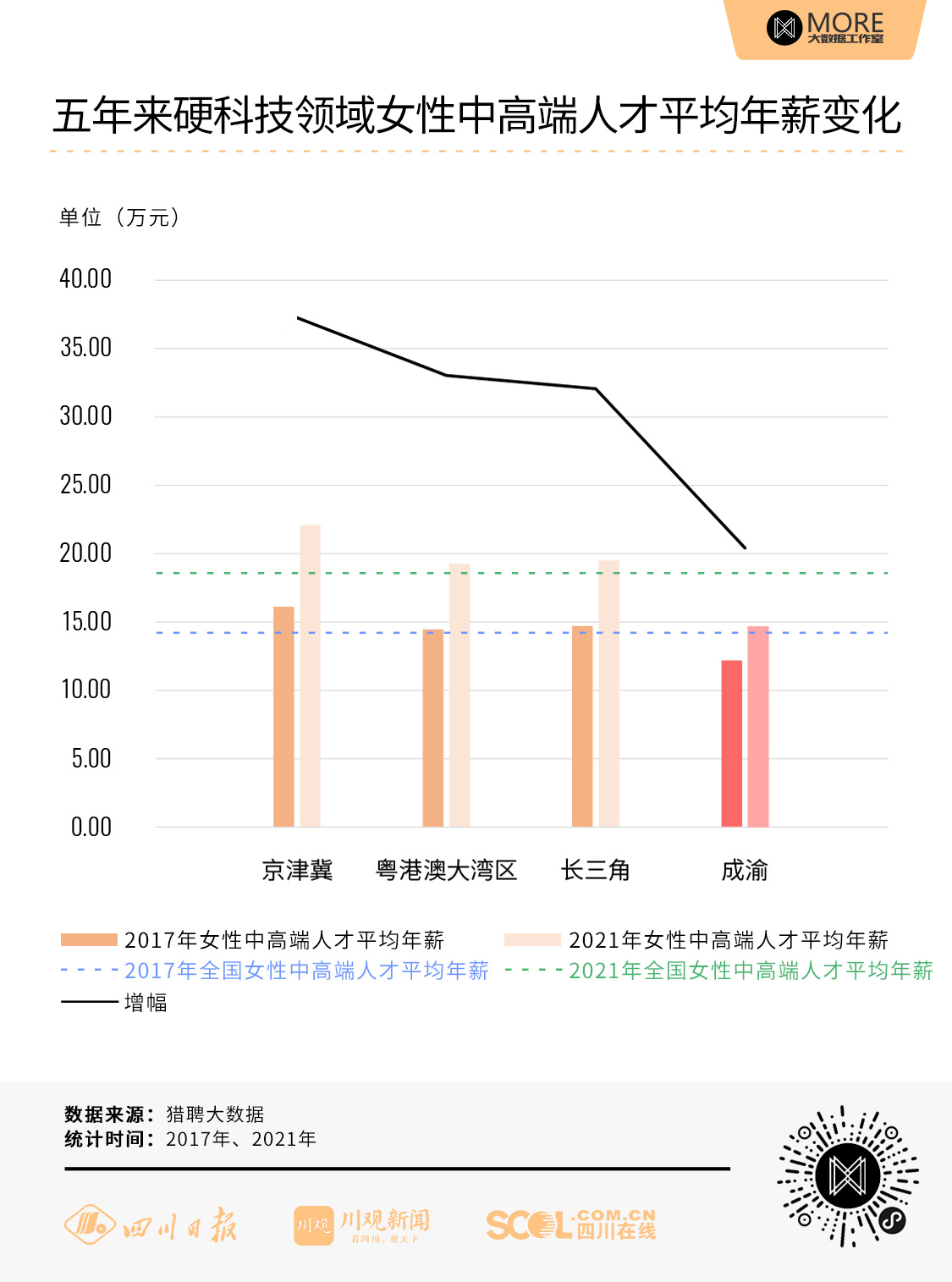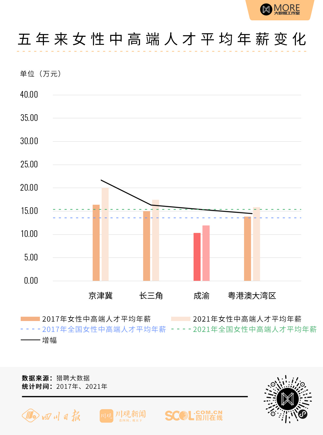 二、成渝地区女性中高端人才平均年薪涨幅高于全国水平