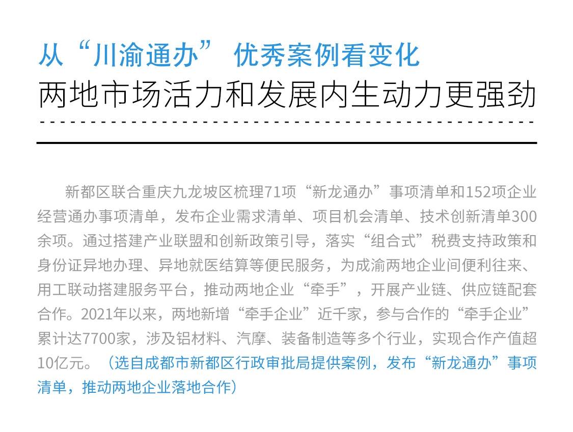 在党的二十大即将召开之际,成渝地区双城经济圈建设再添务实之举:由四川省政府办公厅指导、省政务服务和公共资源交易服务中心主办、四川日报社承办的“川渝通办”优质窗口评选活动结果全部出炉,30家“川渝通办”优质窗口、10个优秀案例经过层层选拔最终脱颖而出。
