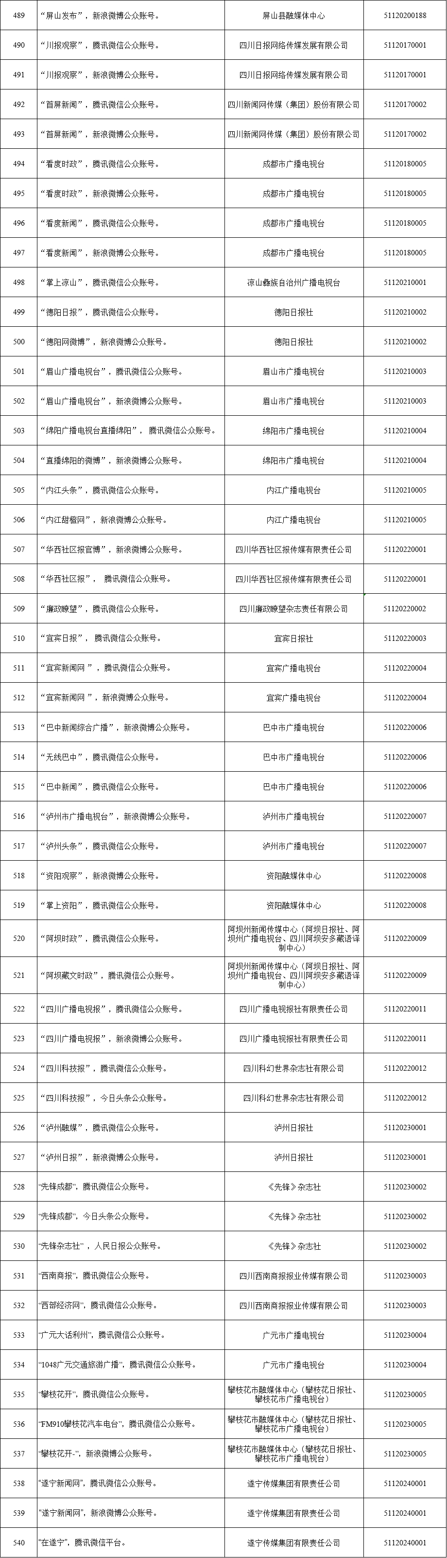 四川省互联网新闻信息服务单位许可信息(截至2025年3月31日)