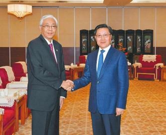 王东明说,中缅两国山水相连,友好情谊源远流长。建交以来,两国在和平共处五项原则基础上发展睦邻友好关系,各领域务实合作不断深化。相信总统阁下此次访问,将对两国全面战略合作伙伴关系深入发展起到重要促进作用。